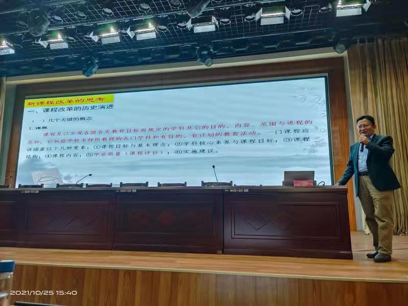 市教科院高中教学研究部副主任张西玖作了题为《课程改革和高考新政再思考》的报告,报告通过系统梳理我国课程改革的历史演进,结合域外对课程体系设计的经验,全方位、宽领域的介绍了新一轮课程改革带来的新变化:一是从知识本位走向素养本位;二是从以教为主转向以学为主;三是从学科“割裂”走向学科“统整”;四是从“坐而论道”转向“学科实践”。报告还就选课走班、综合素质评价、试题的情景化、教育测量与评价等新高考改革举措作了系统的专业化阐释。