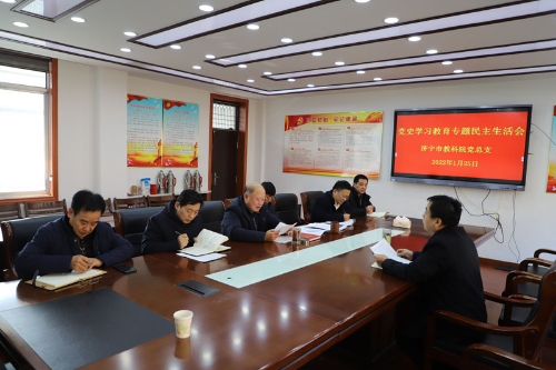 2022年1月25日上午,市教科院党总支召开党史学习教育专题民主生活会,紧密结合思想和工作实际,深入进行党性分析,认真查摆突出问题,严肃开展批评和自我批评。院党总支书记陈伟主持并代表班子作对照检查,院班子成员参加。市教育局党组成员、副局长王步德到会指导并点评。
