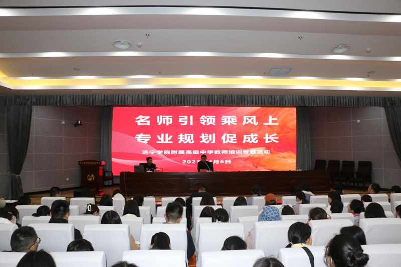 为加强学校师资队伍建设,促进教师专业发展,4月6日,济宁学院附属高中开展“名师引领乘风上,专业规划促成长”教师专题培训活动。副校长马一鸣参加并主持活动,学校百余名中青年教师参加了活动。