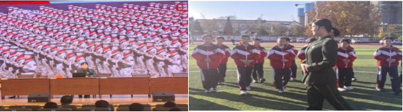 今年九三受阅女民兵席楠楠作为特聘思政课教师,为师生奉献了一场别开生面的思政课。席楠楠首先分享了自己在武警猎鹰突击队的服役经历,详细介绍了自己在部队强化体能、擒拿格斗、枪械射击等日常训练内容。同时,结合受检阅的宝贵经历,以鲜活真实的事例,生动讲述了受阅前的艰苦训练和受阅时的荣耀。随后,席楠楠将课堂教学延伸至操场,组织部分学生开展队列训练,她悉心指导“立正”“稍息”“齐步走”等规范动作要领。同学们则展现出高度的专注与坚毅,训练口号响亮有力,回荡在操场之上。