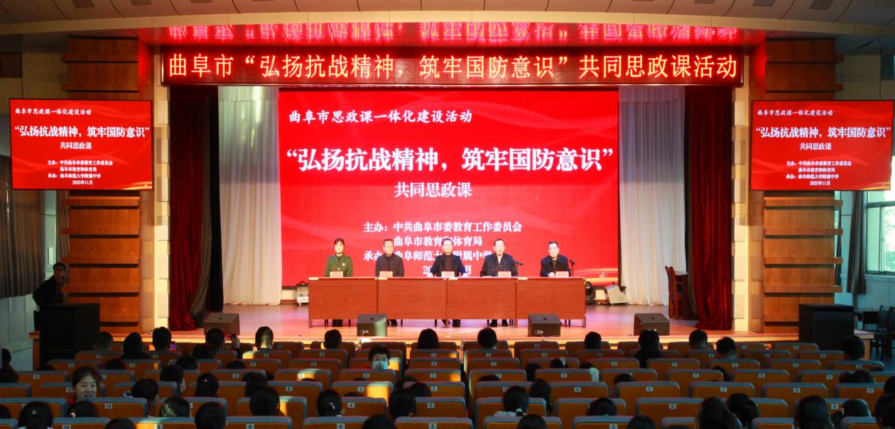 11月27日,中共曲阜市委教育工委、曲阜市教体局举办“弘扬抗战精神,筑牢国防意识”大中小共同思政课活动。曲阜师范大学马克思主义学院副院长刘宝杰,中共曲阜市委教育工委副书记蔡文彬,曲阜师范大学附属中学党委副书记、校长孟祥东,市教师教育发展服务中心主任付云震,全市思政育人特色学校校长,镇街、市直思政工作负责人以及全市小初高学段二百余名思政课教师齐聚一堂,共同参与这场盛会。