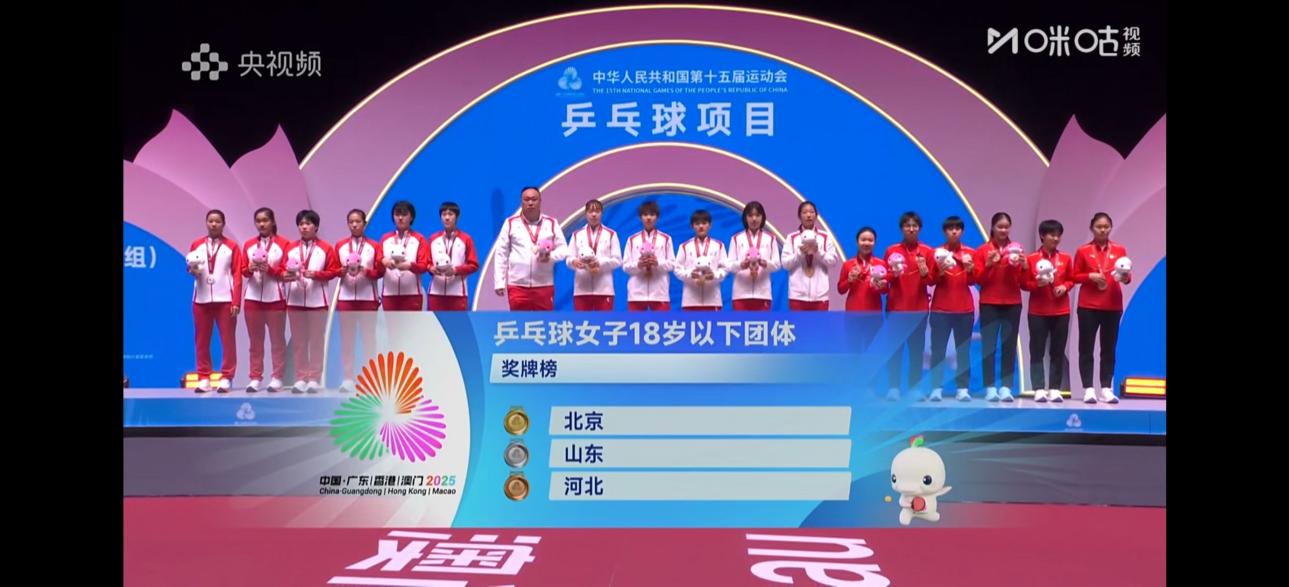 近日,第十五届全国运动会乒乓球赛事在澳门圆满落幕,济宁学院附属高级中学高三学子丁怡婕作为山东队主力队员出战,与队友携手过关斩将、奋勇拼搏,最终助力山东队斩获银牌,在全国赛场展现附高学子的青春风采与竞技实力。