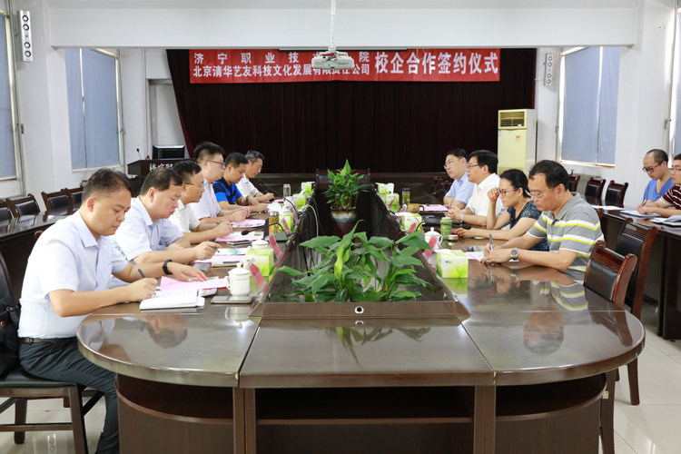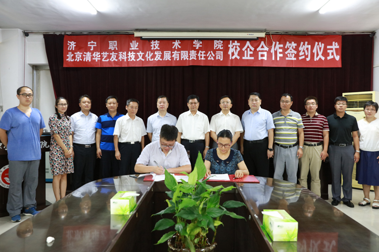 7月20日,济宁职业技术学院(简称学院)与北京清华艺友科技文化发展有限责任公司(简称清华艺友)校企合作签约仪式在学院行政楼3楼会议室举行。学院副院长孙志春主持签约仪式,市教育局副局长伊立峰、市高校办副主任董学军出席签约仪式。院长李新斗出席签约仪式并致辞。市投资促进局副局长代超,北京清华艺友科技文化发展有限责任公司董事长助理李顺才、研究院院长吴雅林博士代表董事长出席。