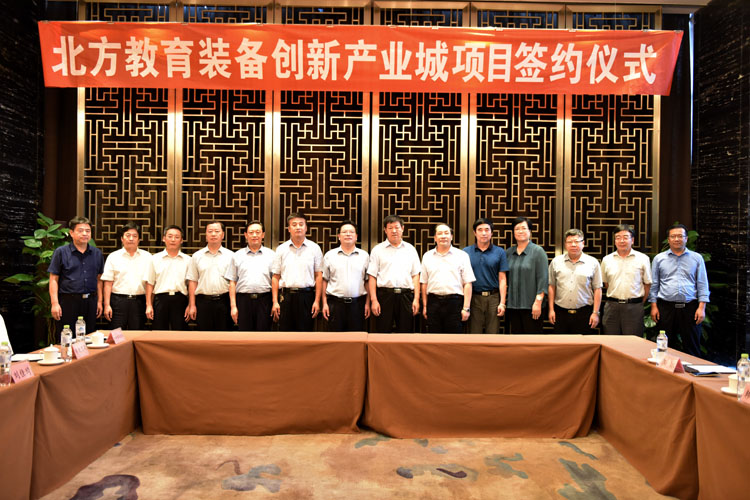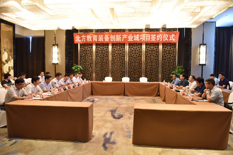 7月25日, 由市教育局对接引入的“北方教育装备创新产业城”项目,由教育部教育装备研究与发展中心、济宁市人民政府、广东同天投资管理有限公司三方正式签约。市教育局局长、市高校办主任高广立,市高校办副主任、市教育产业招商办主任董学军出席了签约仪式。