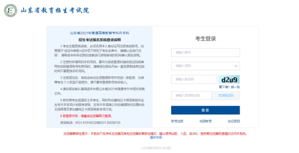 考生进入山东省2021年普通高等教育专科升本科招生考试报名登录页面。