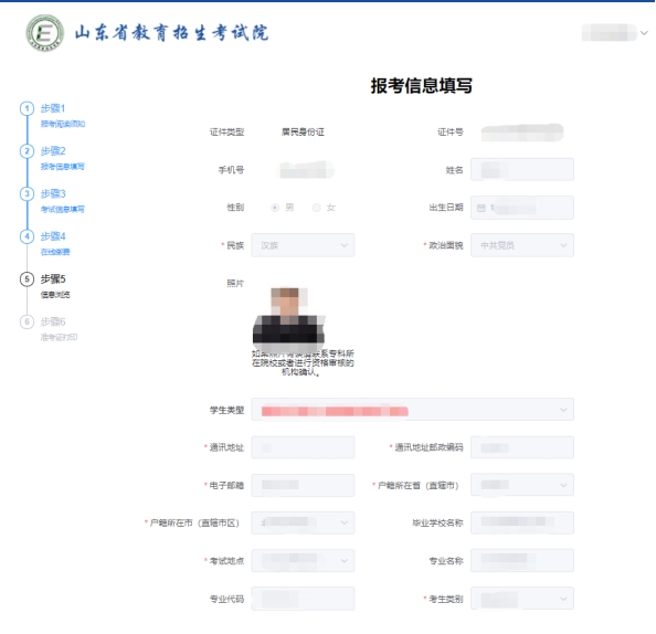 其中,姓名、性别、出生日期、照片、毕业学校名称、专业名称、专业代码默认显示,其他带‘*’字段为必填项。