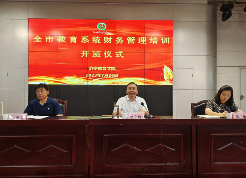 7月26日至28日,市教育局成功举办全市教育系统财务管理培训班。7月26日上午在济宁教育学院举行开班仪式。开班仪式由市教育局财务科主要负责同志主持,济宁市教育局一级调研员伊立峰出席开班仪式并讲话。济宁教育学院党委副书记、院长韩敏致欢迎辞,副院长田洪亮、郑慧出席开班式。