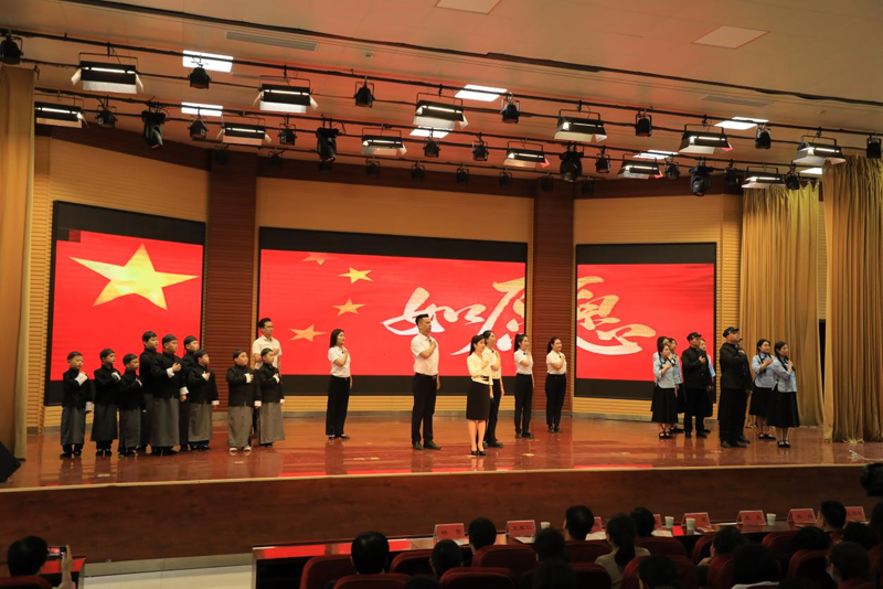 活动中,师生代表们以积极向上的精神风貌和热情饱满的专业姿态为现场及直播端观众呈现了一场丰盛的视听盛宴,充分彰显了新时代青年的风采与担当。节目《如愿》《奋进之我》展现了党员教师的初心使命;《师意四季 满庭芳华》述说了平凡教师的奉献与坚守;《上春山》则跳出了青年教师的活力与风采;《祖国祖国我爱你》《中国红》是孩子们对祖国爱的诉说;《采莲》《童说节气》是传统文化润物无声的传承......
