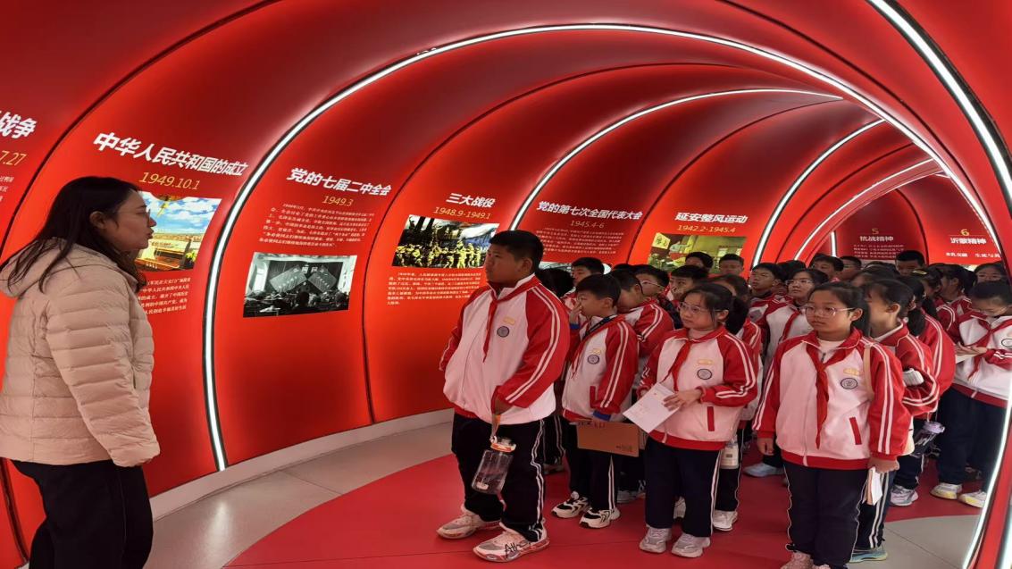 崇文学校组织师生走进曲阜市党员党性提升实训基地,开展“红领巾学党史,争做新时代好少年”主题思政教育活动,让孩子们在沉浸式体验中感悟党的初心使命,在红色熏陶中树立远大理想。“一个支部一座堡垒,一名党员一面旗”的醒目标语,让学生明白“众多党员在各个岗位上带头为大家服务,保护我们的幸福生活”的道理;红色探索之旅,通过老照片、老物件、解说牌,生动再现了党的奋斗历程,增强了学生对中国共产党的情感;“沂蒙红嫂救伤员”等红色故事让学生感悟军民一家亲的沂蒙精神,帮助学生种下拥军爱民的种子。
