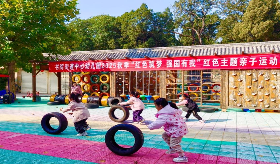 书院街道中心幼儿园举行“红色筑梦 强国有我”亲子趣味运动会,以幼儿喜闻乐见的形式搭建思政教育平台,让红色文化浸润童心,让爱国精神薪火相传,切实推动思政教育在学前教育阶段走深走实。活动围绕“红色精神具象化”设计8项亲子竞赛项目,将思政教育从“听”转化为“做”。小班“搬运物资”“越过沼泽”模拟红军后勤保障场景,引导幼儿理解“责任”;中班“齐心协力”“运送弹药”“过草地”强调协作,让幼儿体会“团结就是力量”;大班“炸碉堡神投手”“车轮滚滚向前行”“巧运军粮”复刻革命历程,鼓励幼儿践行“勇于挑战、坚持不懈”的精神。
