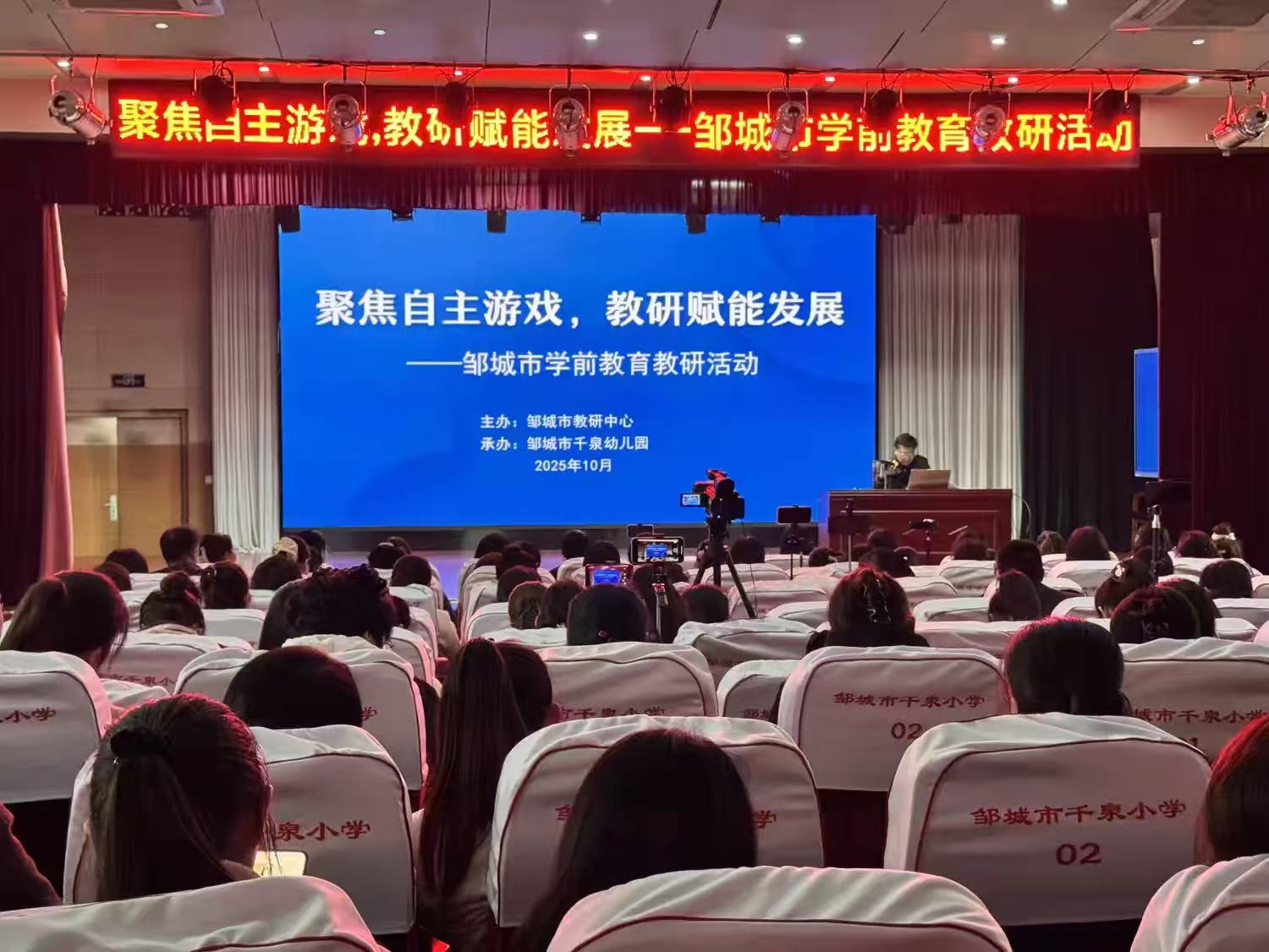 近日,邹城市学前教育教研活动在千泉小学报告厅举行。本次教研活动以“游戏为基本活动”为核心,围绕教师专业能力提升展开。邹城市教研中心分管负责同志、学前教育教研员以及全市各幼儿园骨干教师共同参与交流。