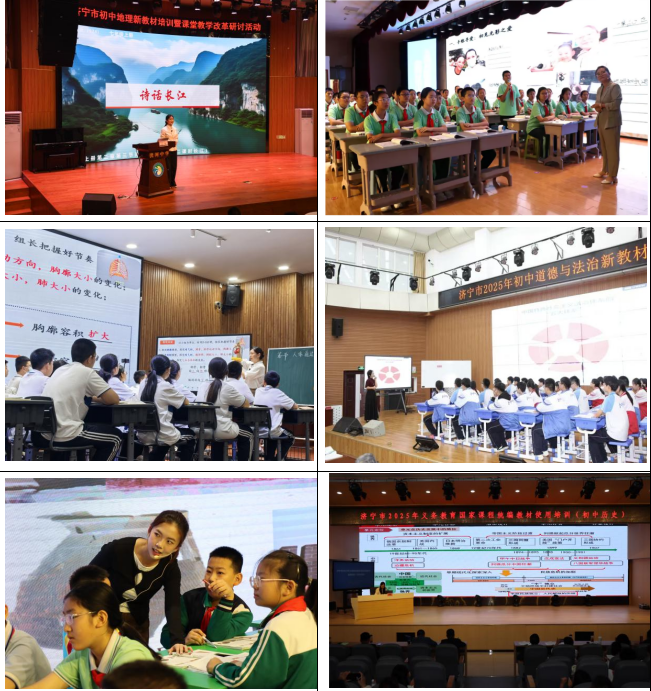 统筹谋划系统推进,多层联动组织有序。本次培训充分发挥市、县、校三级教研体系联动优势,构建“市级统筹、县级落地、校本转化”的实施机制。各学科培训分别在济宁市实验初中、济宁市高新区洸河中学、济宁学院附属中学高新校区、曲阜市孔子中学等多个学校开展,培训内容涵盖教材解读、课例展示、评课交流、经验分享等环节,组织严密、节奏紧凑,确保培训高效推进。