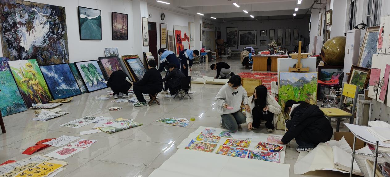 活动一开始,同学们纷纷拿起画笔、挥毫泼墨,带着满满的热情参与其中。大家把对新年的美好期盼、对未来的无限遐想,还有对传统文化的喜爱,都细细融进了尺素之间。短短时间里,便征集到书法、绘画、插画等各类作品292件,每一件都藏着少年们的小心思,透着不加修饰的真诚。