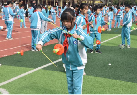 推进学科融合,激活文化育人价值。该校以抖空竹特色项目为切入点,组建跨学科校本教研团队,探索体育与多学科深度融合路径。引导学生追溯空竹历史、探究结构与发声原理,开展“写空竹、画空竹、唱空竹、制空竹”系列实践活动,将空竹文化融入语文、数学、美术、音乐、劳动等课程教学,构建研究型、项目化空竹课程。通过学科联动,实现“修德、启智、健体、润美、促劳”的综合育人目标,让体育锻炼兼具文化内涵与育人温度。