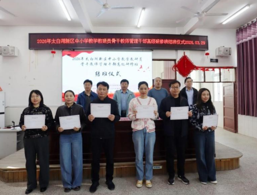 为深入贯彻落实新时代教育改革发展要求,提升中小学教学教研管理干部的专业素养与管理能力,2026年3月27日至29日,太白湖新区教育分局举办中小学教学教研员、骨干教师、管理干部专题研修班。全区各中小学教学教研员、骨干教师、管理干部参加研修班,共研教学管理之道,共促教育质量提升。